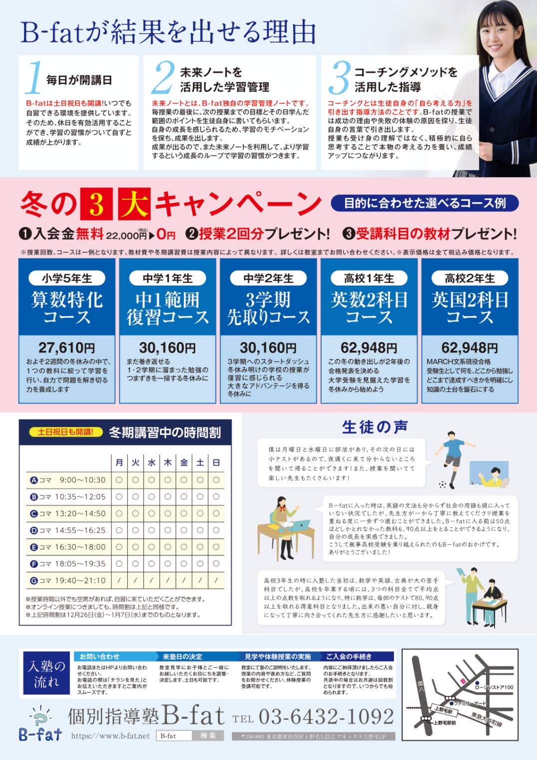 冬期講習をご検討の方は、このお得な機会にぜひB-fatをご利用下さい!